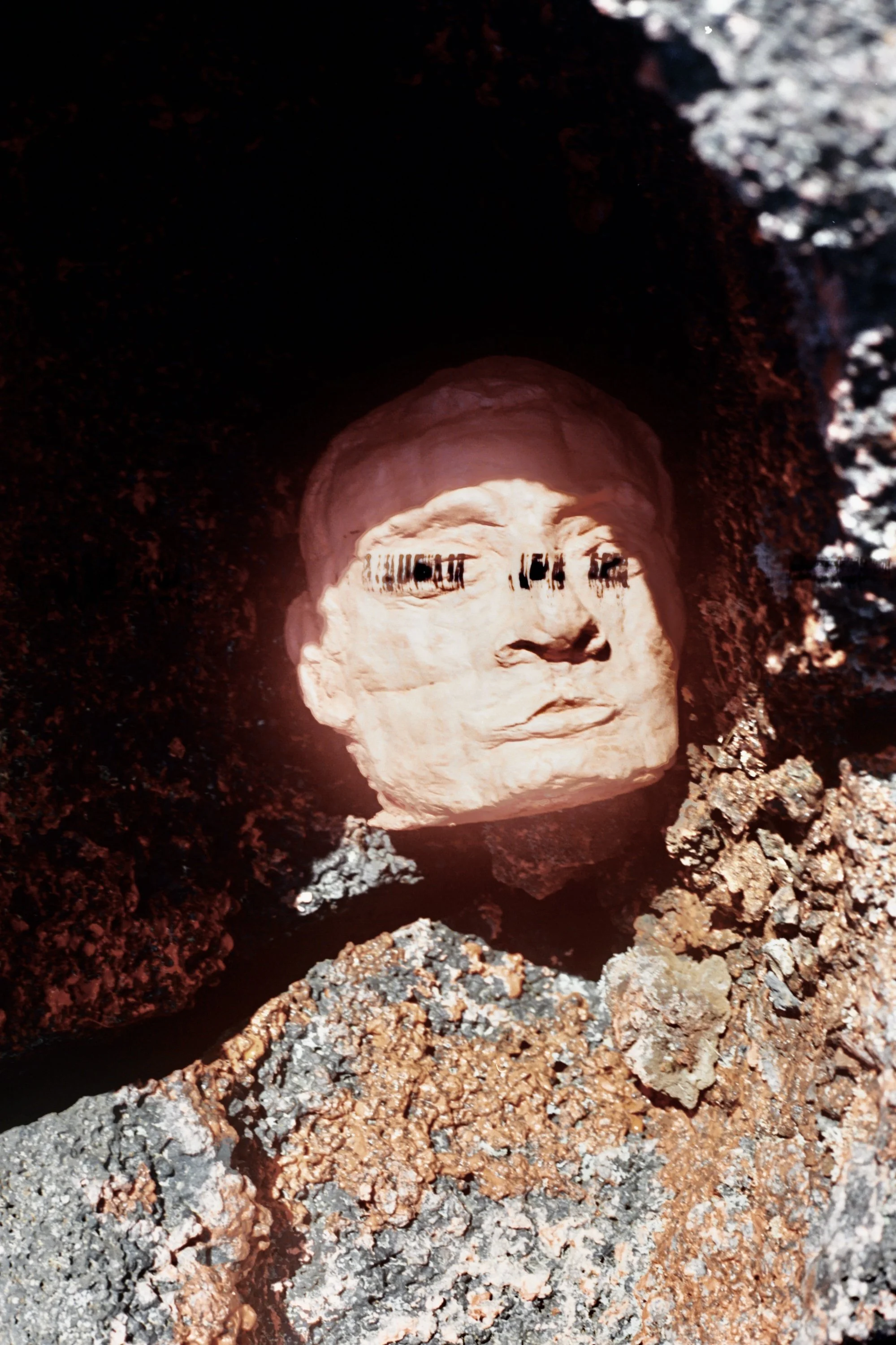 Terracotta, stonecarved tholeiite, lace fabric, 50mm